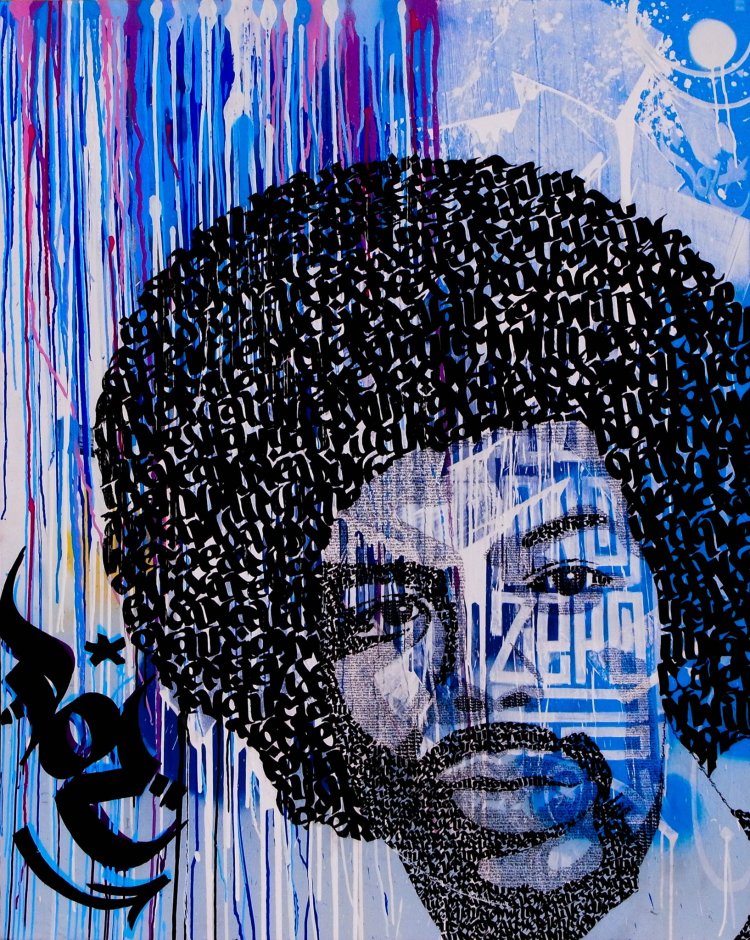 Yann Chatelin commence par le Graffiti et passe à la toile lorsqu’il s’installe au Maroc. Comme beaucoup de graffeurs, son travail était essentiellement orienté sur le lettrage. Sur toile, au départ, c’est aussi le cas. Puis, son travail évolue vers la calligraphie. Une influence certainement due au fait qu’il réside au Maroc… Un pays où la lettre a tellement de formes et où il y a tellement d’artistes qui l’utilise… Il s’est aussi initié au Qalam, roseau taillé en pointe utilisé traditionnellement dans la calligraphie perse.