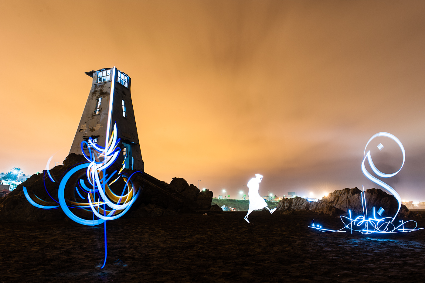 Ces personnages ont donné lieu à l’arrivée du pochoir de lumière… « Ce pochoir nous a compliqué la prise de vue. Déjà, on avait l’habitude de travailler à deux. Pour cette série, on a travaillé avec une personne supplémentaire, Ghita Skali qui est une étudiante marocaine en art contemporain. Elle nous a suivi sur toute la production de la série, c’est-à-dire pendant plus d’un mois et demi. »