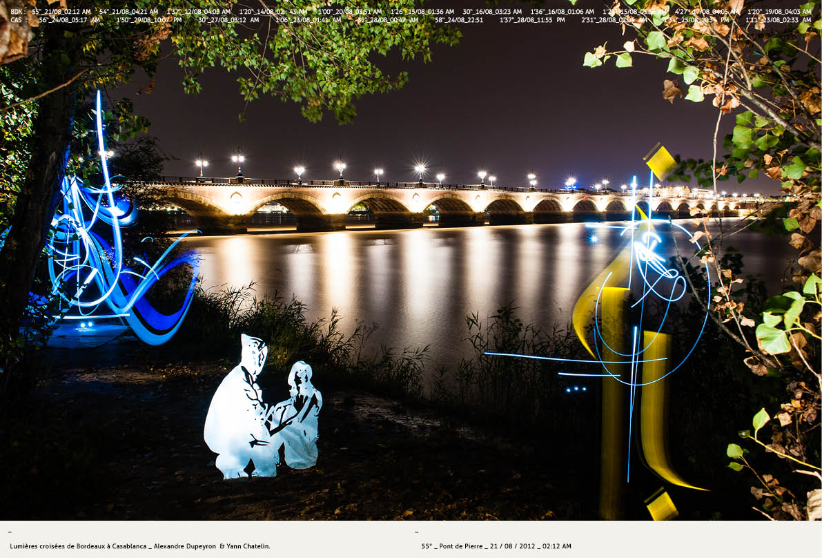 Une ballade au Marché de Lerme à Bordeaux s’est imposée pour découvrir l’univers du light painting, à l’occasion de l’exposition « Lumières croisées de Bordeaux à Casablanca » d’Alexandre Dupeyron et Yann Chatelin. Une belle surprise !