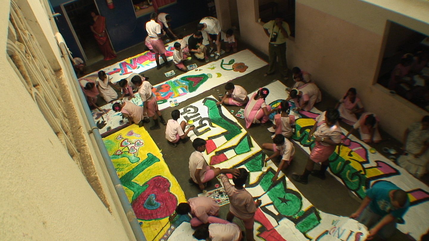 Il y a plusieurs choses… A retranscrire comme ça, ce n’est pas évident mais je me rappelle d’une école à Madras où l’on a fait des ateliers Graff… En fait, il n’y avait pas de vrai système scolaire, ce sont des bénévoles qui ont monté l’école donc ils fonctionnent avec très peu, pour ne pas dire rien… Mais nous avons été très bien reçus. C’était formidable pour eux que des gens à la peau claire viennent partager un moment, un savoir avec eux ! C’est compliqué là-bas mais en gros, selon les castes, plus tu as la peau blanche, plus tu es respecté, plus tu trouves un travail facilement, etc. C’est complètement absurde bien sûr, mais c’est une réalité.