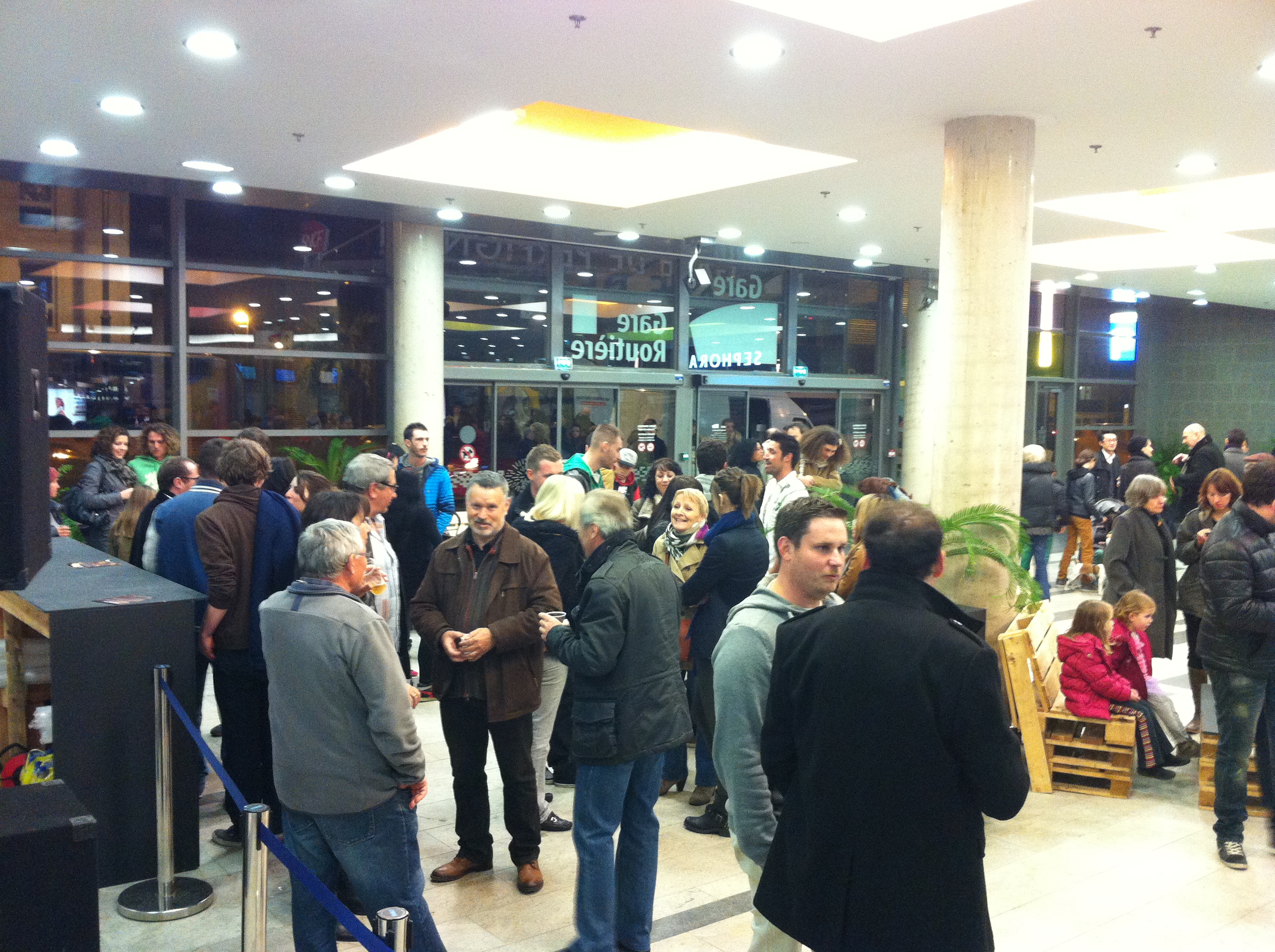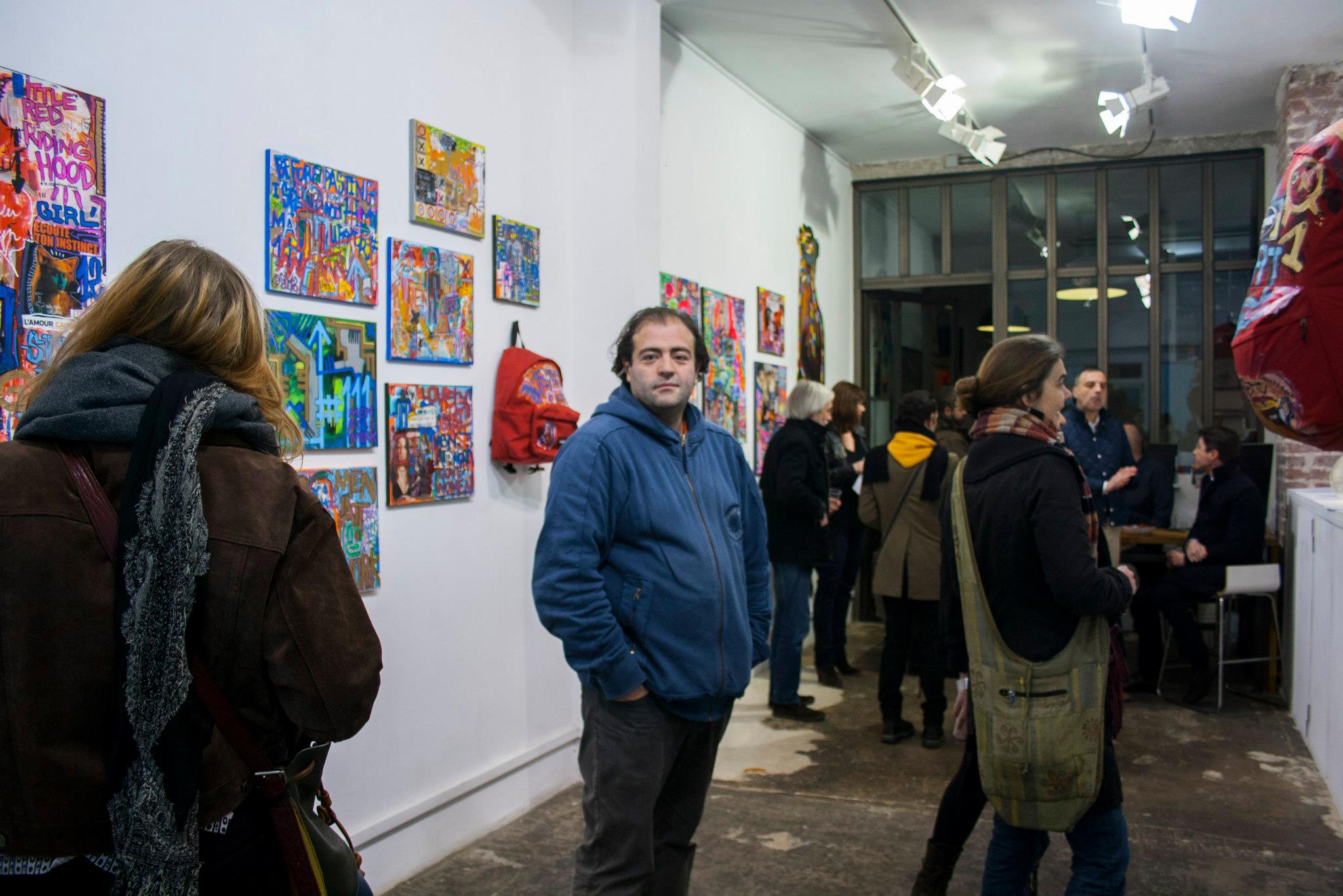 Le vernissage a marqué les esprits par l’aspect inédit de la soirée. Imaginez : DJ Gram aux platines, des projections vidéo, un bar et les performances Graffiti de Hope et Mutha en direct sur des bâches en 4m x 3m… Le tout dans un hall de gare !