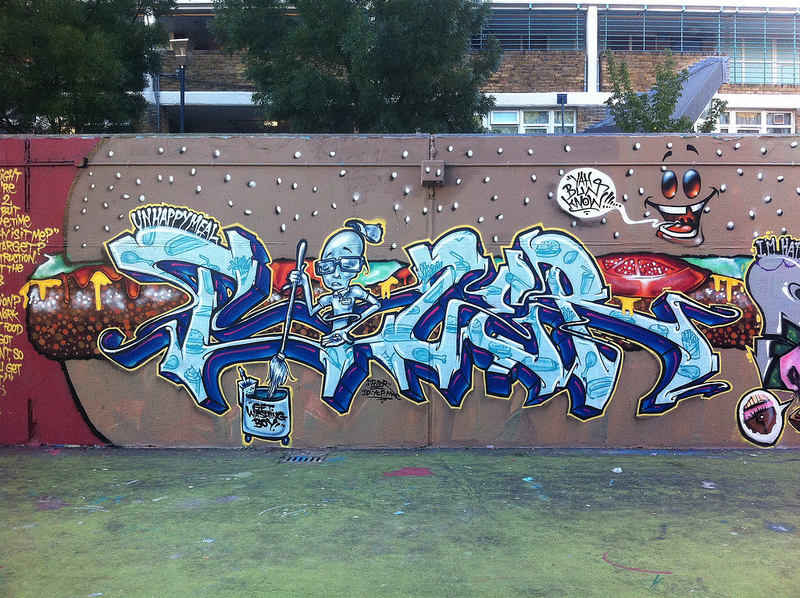 C’est bien que les institutions prennent les choses sérieusement mais il faut aussi rappeler que le gouvernement continue à mettre des jeunes en prison pour des « crimes » non violents, des Graffitis. C’est complètement fou ! Donc, tu vois, ça dépend… A Londres, il y a quand même des jeunes incarcérés dans des prisons de haute sécurité pour avoir fait du Graffiti ! Donc le gouvernement doit encore beaucoup évoluer à ce sujet. Mais c’est vrai que le grand public, jeunes et vieux, apprécie davantage le Graff.